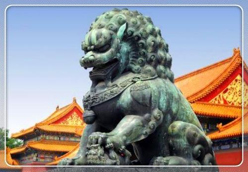 古代宫殿门前的一对石狮通常是?