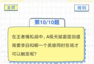 A级天赋雷霆剑道需要李白和哪一个英雄同时在场才可以触发呢